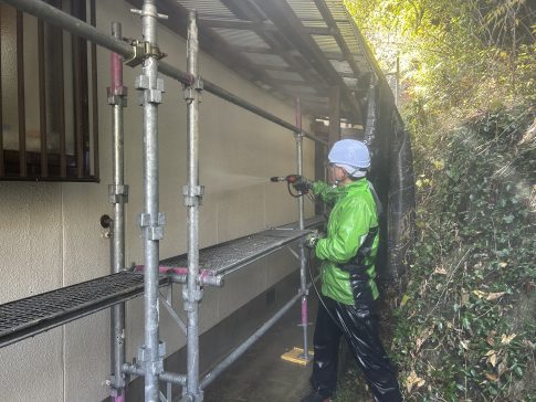 代表親方ブログこんにちは♪こだわり塗装のほりちゃんです。 本日は姫路市四郷町で外壁の洗浄作業を行ってきました。今朝は朝から冷え込んでおり、北側の瓦は凍てついておりました。 軒樋には沢山の落ち葉が詰まっておりました。もう水が流れる余地す...