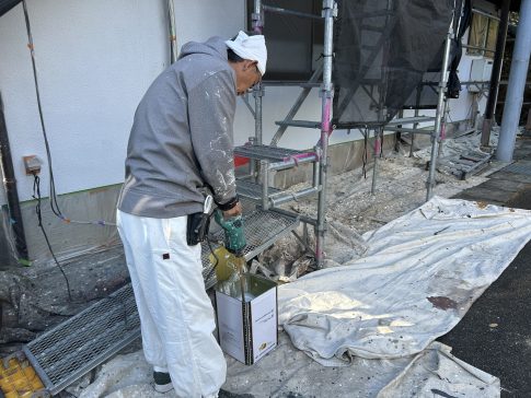 代表親方ブログこんにちは!こだわり塗装のほりちゃんです。 本日は、13年前に当店で塗装して頂いたお宅の外壁塗装、下塗り作業の2日目に突入いたしました。 かくはん機(液体と液体、液体と固体を均一に混ぜ合わせるときに用いられる機器)を使用...